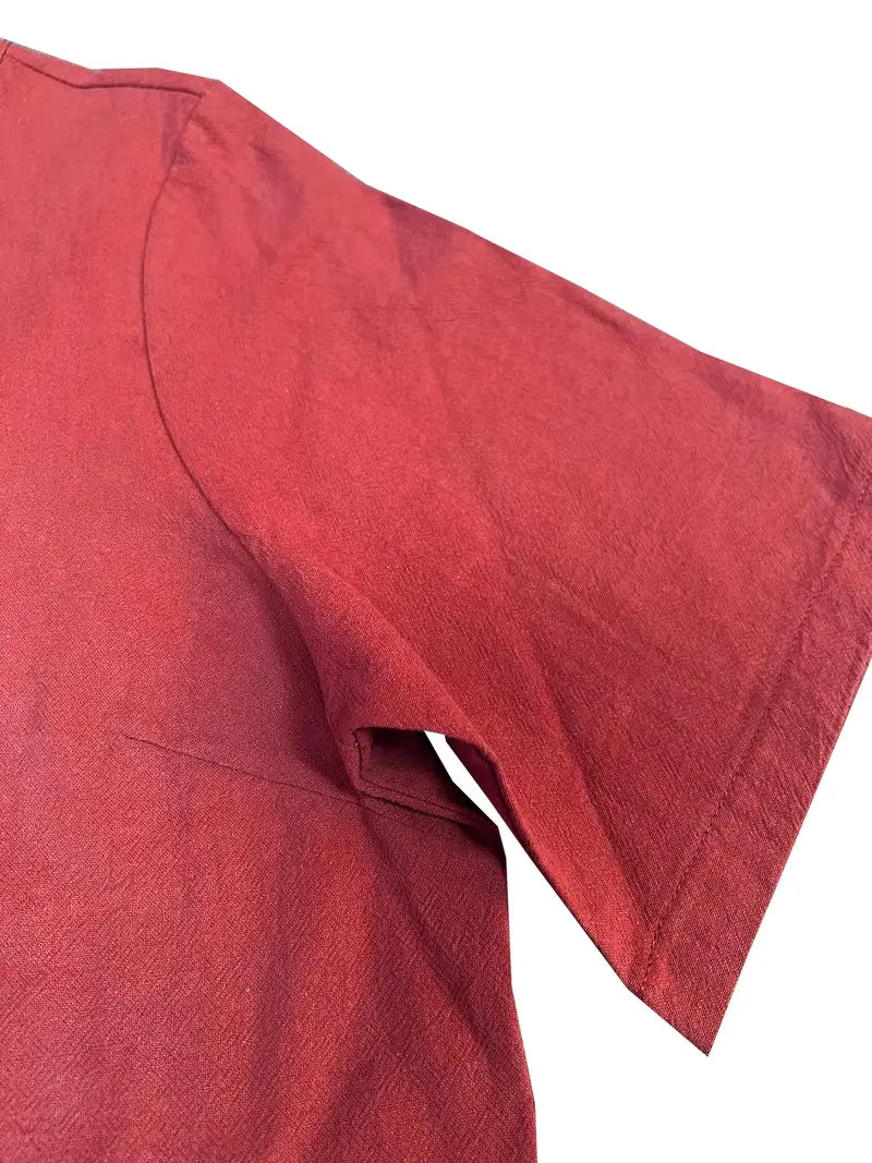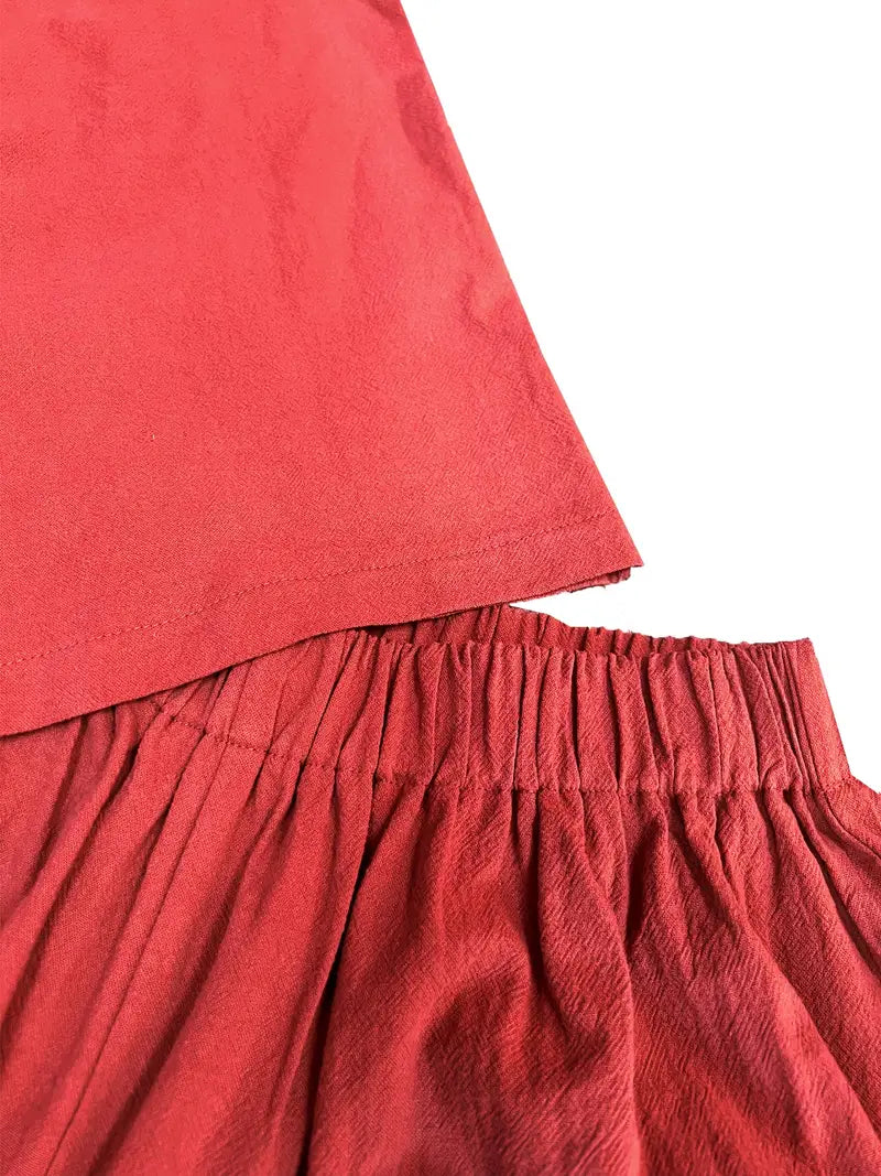Confeccionado con un tejido premium de caída impecable, su tono carmín profundo irradia confianza y distinción. Combínalo con sandalias de diseño o tacones bajos para acentuar su versatilidad.