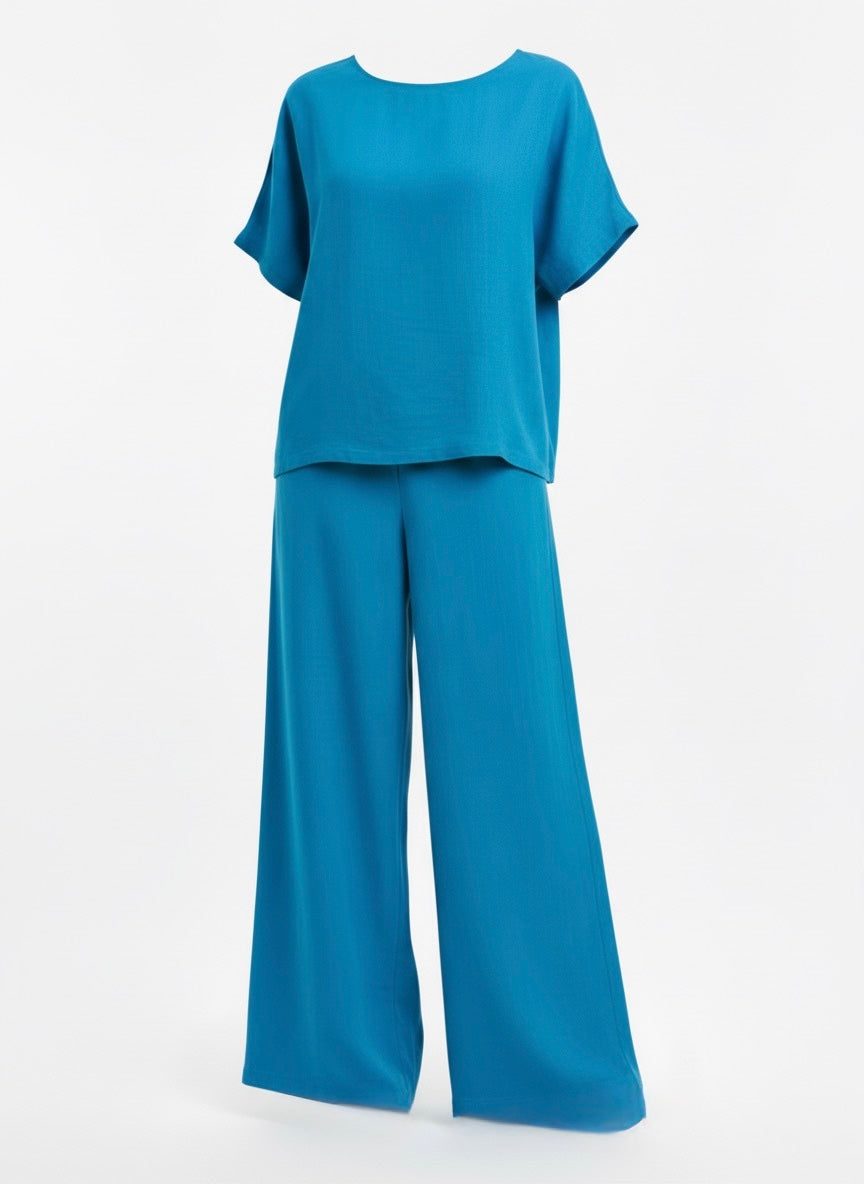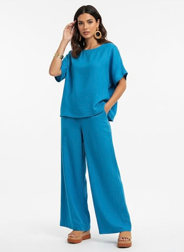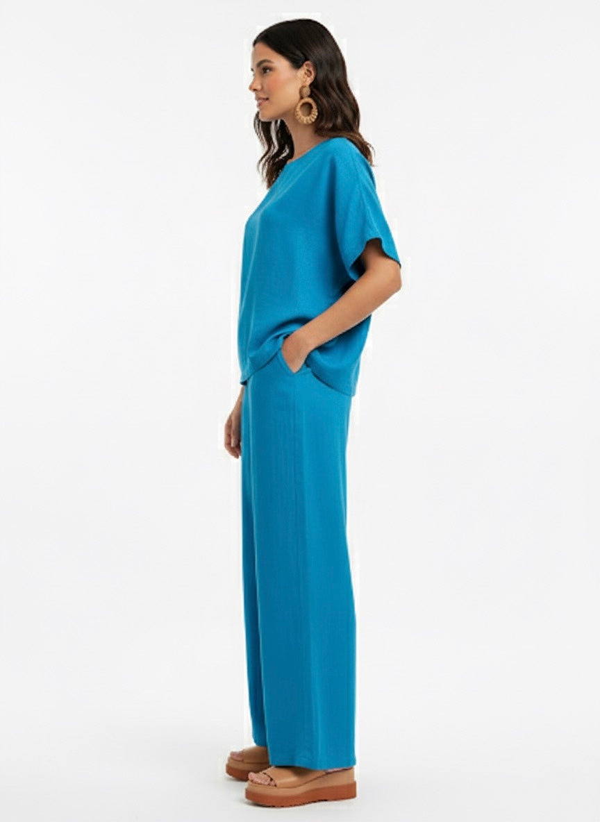Nuestro Ocean Set de 2 piezas está confeccionado en lino 100% natural, ideal para los días cálidos donde el estilo relajado se convierte en protagonista. La blusa de corte amplio y manga corta se complementa a la perfección con el pantalón de caída fluida, brindando libertad de movimiento sin perder el toque sofisticado.